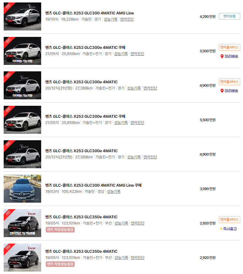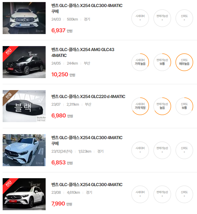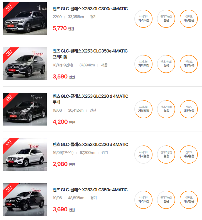벤츠 GLC클래스 중고차 가격